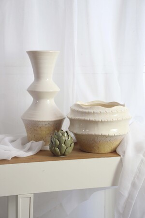Cleaning and maintaining ceramic planters and vases is straightforward. For most ceramic items like the Jug Round White and the Organic Leaf Vase Rustic White, use a soft cloth or sponge with mild soapy water to gently wipe down the surface. Avoid abrasive cleaners or pads that can scratch the surface. For planters with a crackled finish, such as the Pot S/2 White, ensure any soil or plant debris is removed thoroughly but gently, as the crackled surface can harbour dirt. Rinse well with clean water and dry completely to prevent water marks. It's advisable to handle all ceramic pieces with care to avoid breakages and chips, particularly for handcrafted items which may have unique, delicate details.